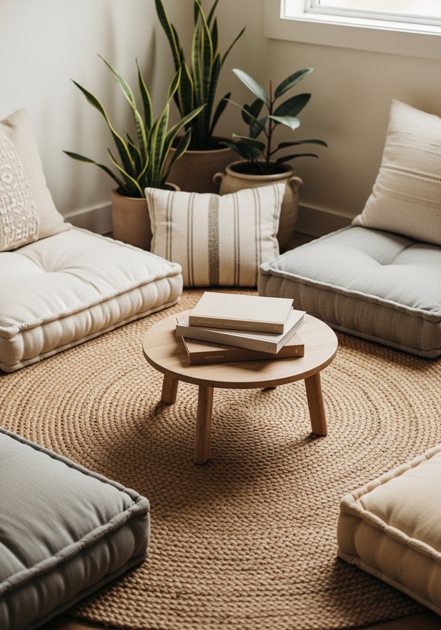 1. Low-Profile Seating with Tatami and Floor Cushions