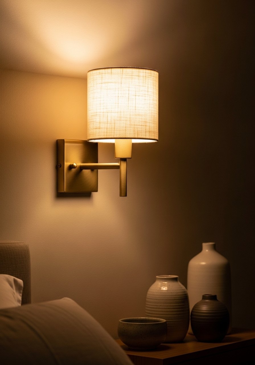 I replaced an oversized lamp with a pair of minimal brass sconces. The light is softer and the bedside table finally breathes.