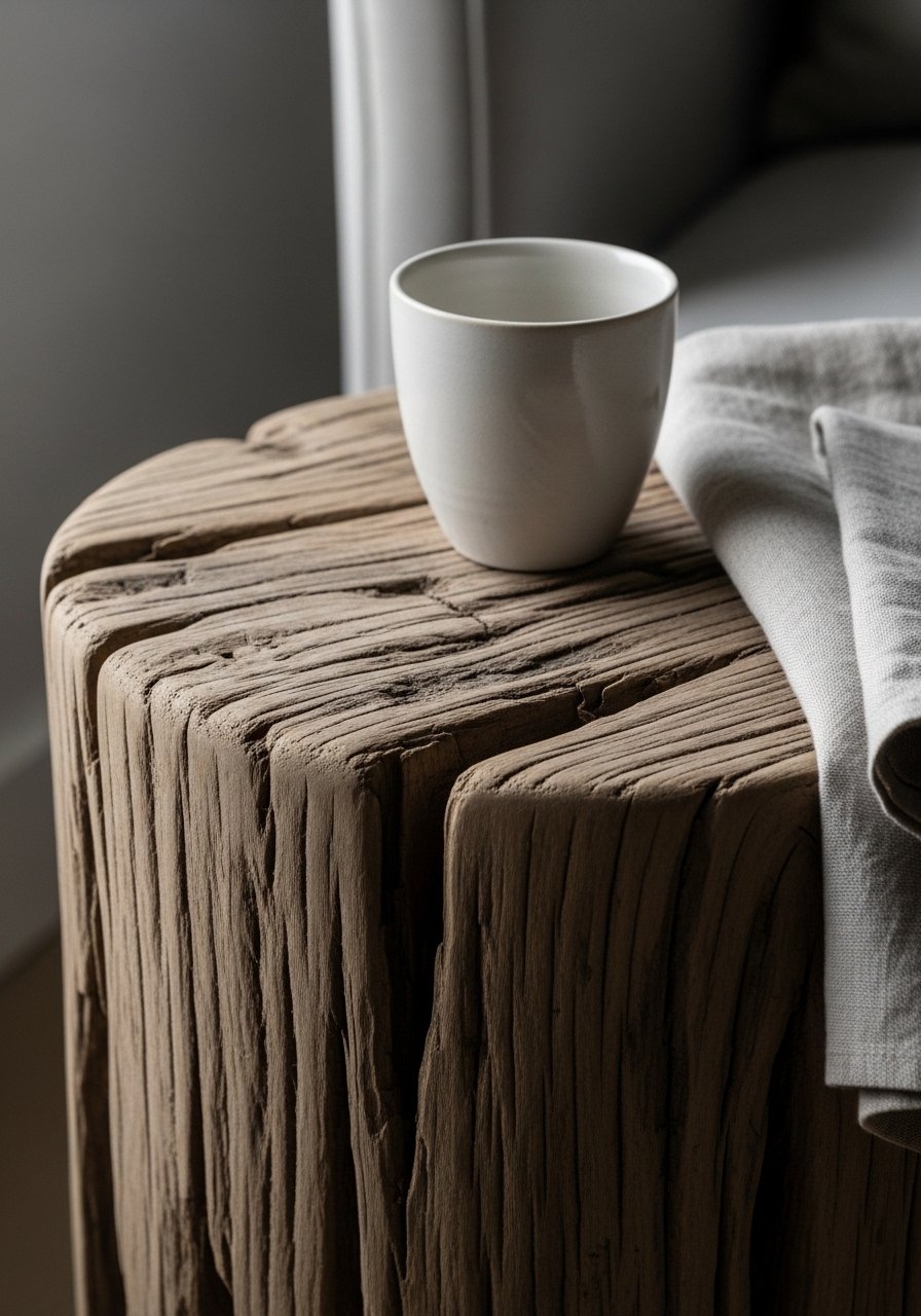 I swapped a polished side table for a driftwood one with visible tool marks. It reads honest and adds a quiet story to the room.