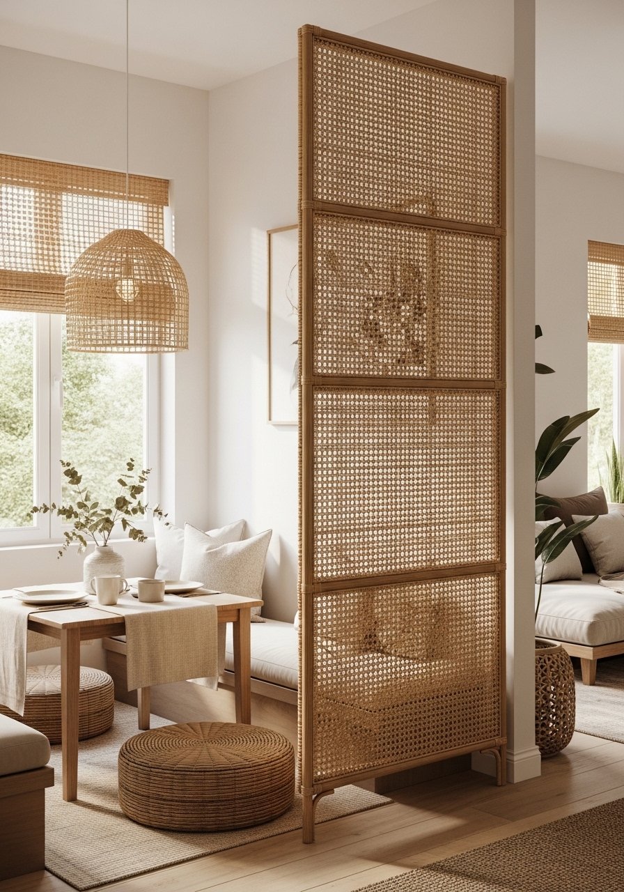 16. Rattan Room Divider for Flexible Privacy