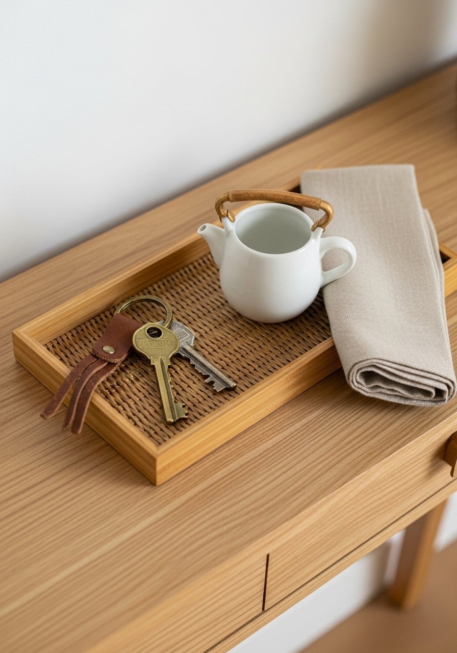 I once used a large tray and it collected junk. A compact tray keeps the habit focused and looks intentional.