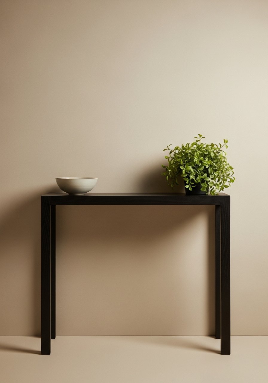 I learned that a single dark piece can give a room definition. An ebonized console reads like a frame for gentle vignettes.