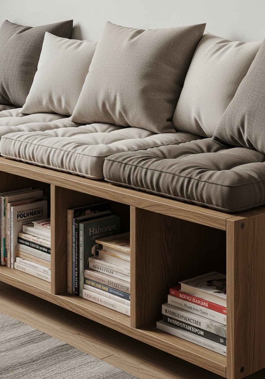 I turned a low bookshelf into a reading bench by adding a cushion. It gained function without losing the room’s lines.