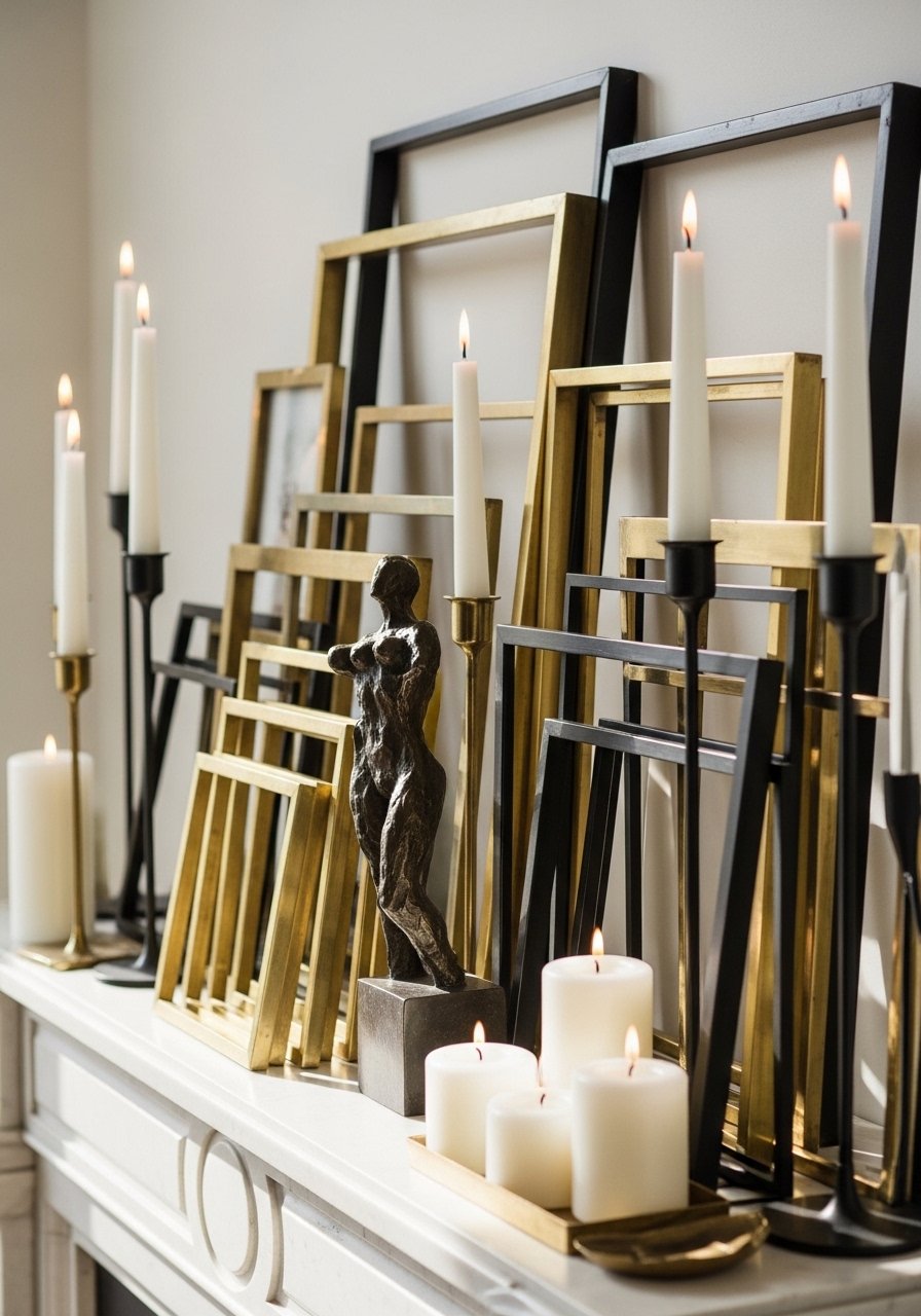 Candles add immediate warmth. I group 5–7 candles in different heights using a marble candle holder set and brass accents. Use a mix of tapered and pillar candles for variation and swap scented only sparingly so fragrance doesn’t overwhelm. Common mistake: spacing candles too evenly—cluster them in a loose group for impact. Candles make a mantel feel lived-in and inviting without fuss.