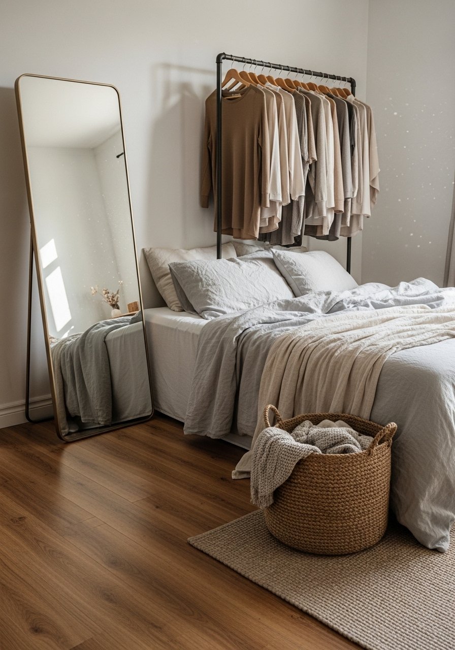 Leaning a full-length mirror gives vertical interest and makes ceilings feel taller. I used a 60-inch leaner in my bedroom opposite the window and the space looked more open. I linked this full-length mirror for a budget-friendly oak frame. Don’t press it flush to the wall — angle it slightly forward so it reflects more of the room, not just the floor. Avoid tiny, narrow mirrors that slice reflections oddly.