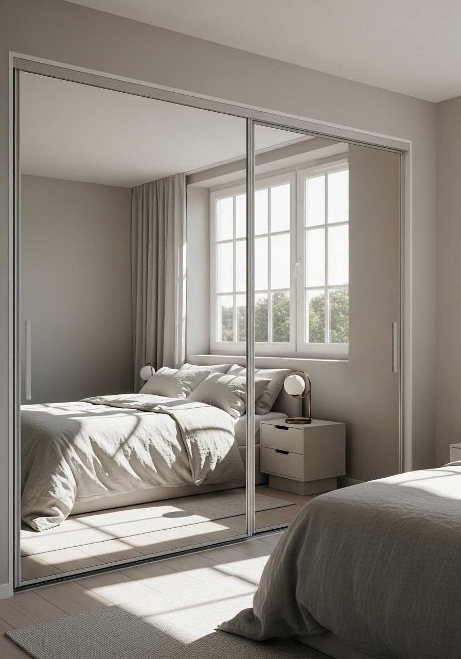 Replacing wardrobe doors with mirrored panels is a practical way to open cramped bedrooms. I swapped mine on a budget-friendly track and the space immediately read larger. These wardrobe mirror panels fit many setups. Mistake: avoid full-length mirrors opposite the bed if you’re sensitive to reflection at night — consider frosted lower panels. Keep closet interiors tidy since reflections double visible items.