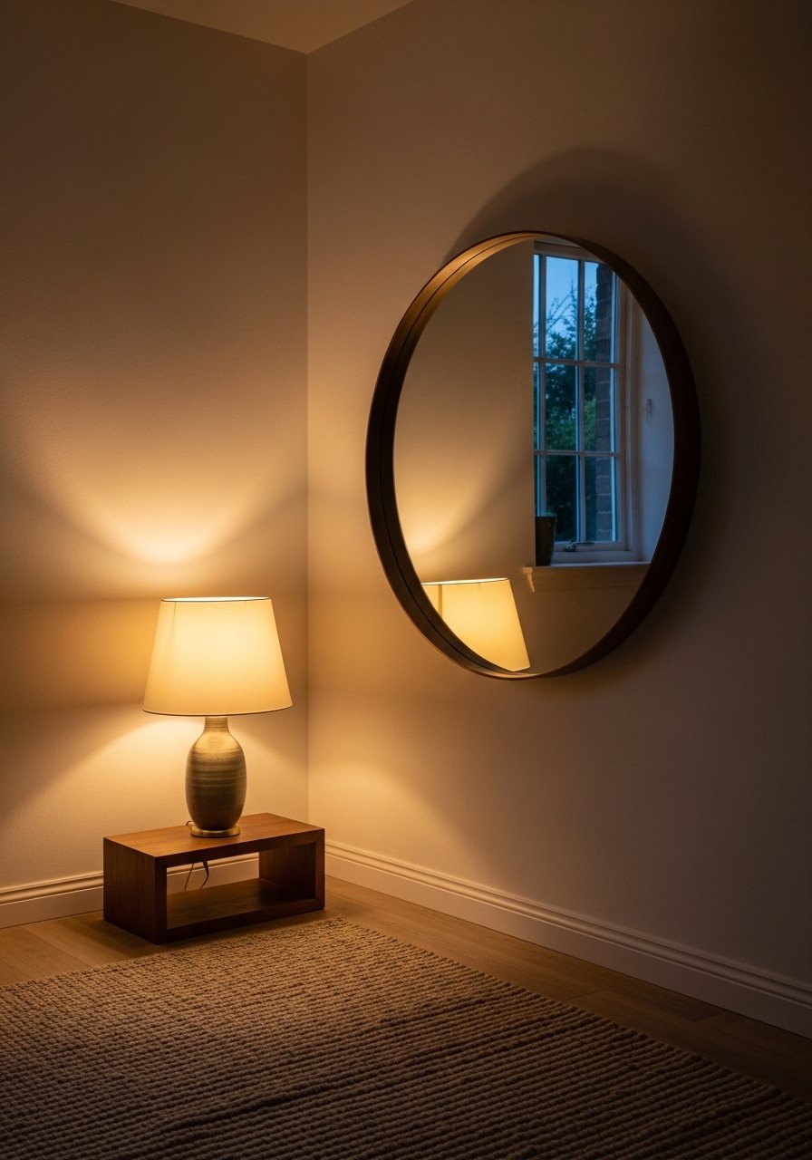 I hung a large round mirror in a dim corner and it made the whole room feel twice as bright. Best for living rooms and entryways. Expect $80 to $200. Hang the mirror so its midpoint mirrors a light source. A mirror alone does not fix clutter. Keep the surrounding vignette simple. This 36-inch round mirror works well on a narrow wall. In photos mirrors can look perfectly centered. In real life you may need to shift a few inches to avoid glare.