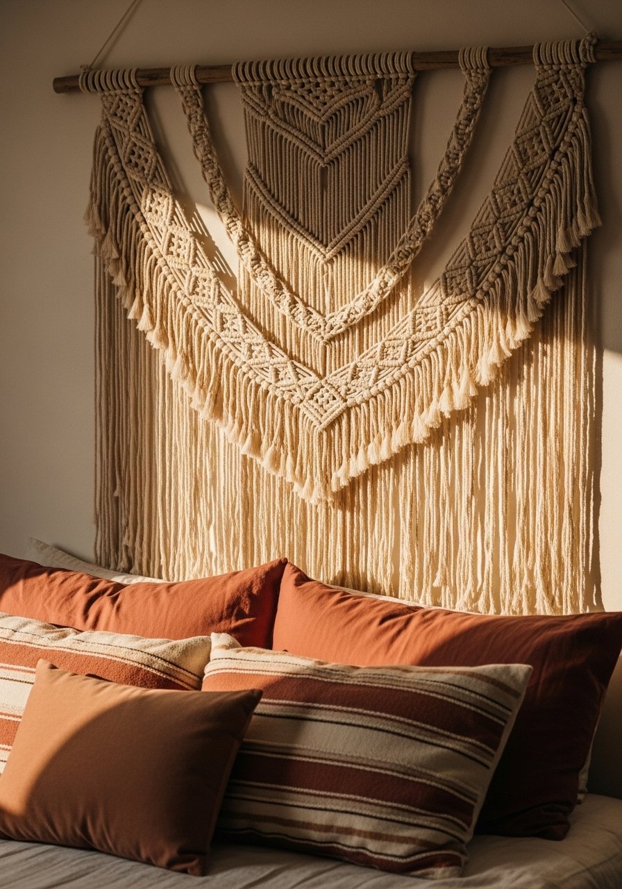 Textured Macrame Tapestry for a Boho Modern Bedroom