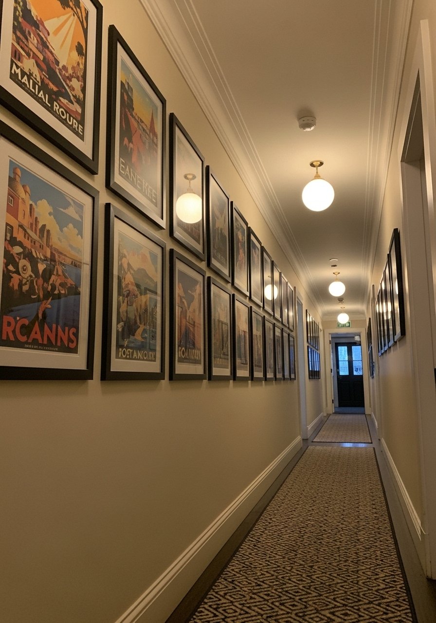A friend asked me how to make a rental hallway more cheerful and I suggested vintage posters. They bring color and narrative. Works for hallways and staircases. Cost is $20 to $80 per poster with thrifted frame options. Mix sizes but keep consistent mats to look intentional. A common error is mixing too many frame finishes. Try affordable poster prints with mats. In photos posters often appear vibrantly saturated. In person, finish and paper type affect color depth.