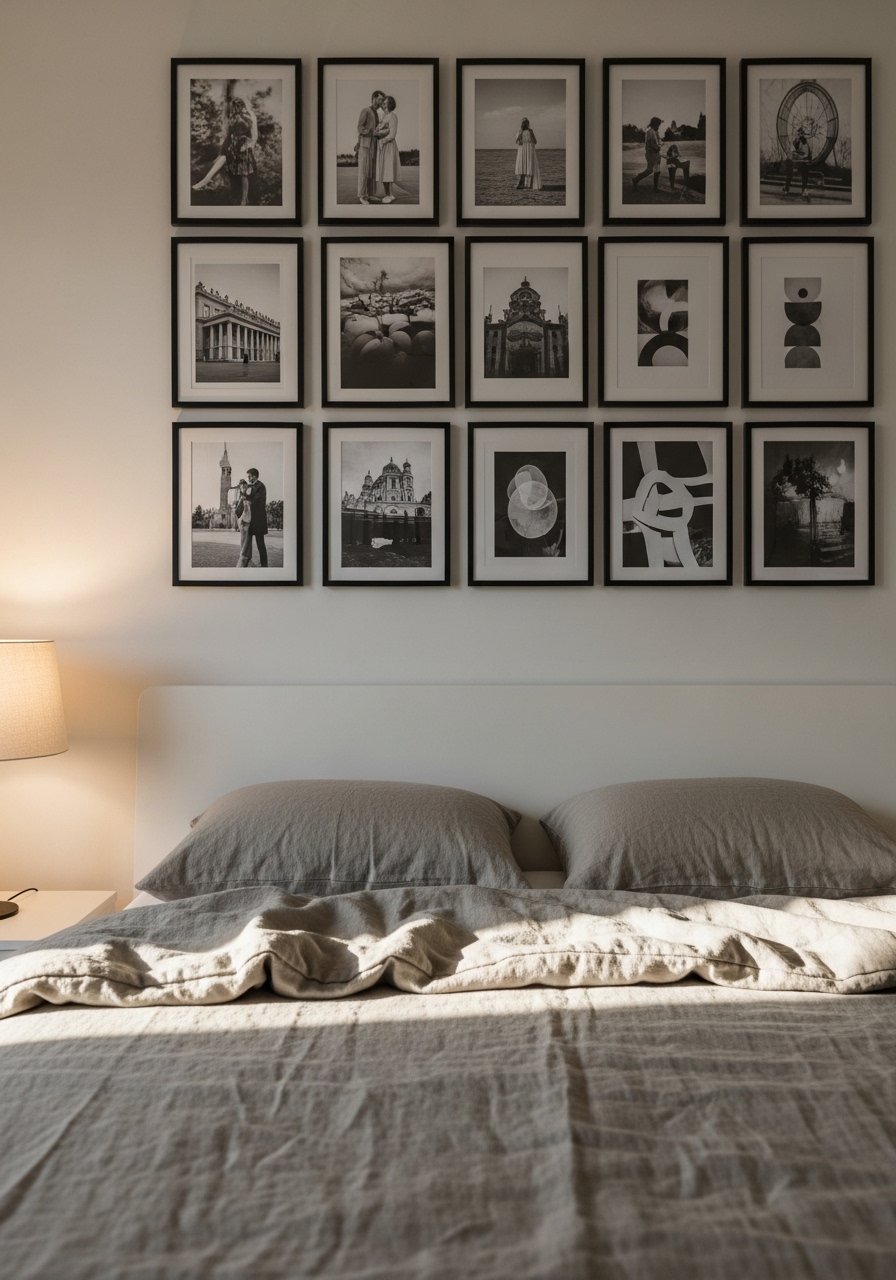 Monochrome Photography Grid for a Calm Bedroom