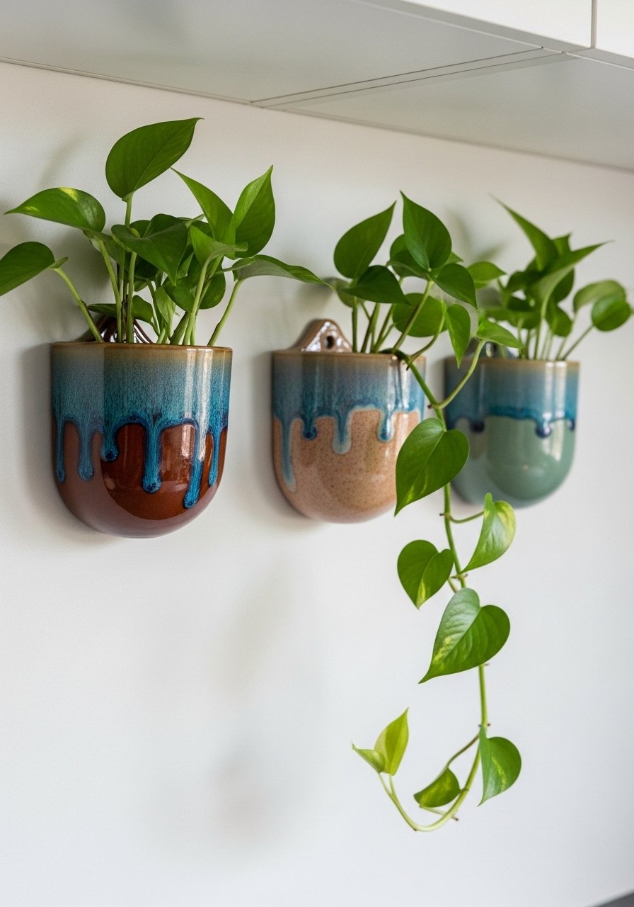 I swapped framed prints for ceramic planters in my kitchen and the space felt fresher. Works in kitchens and sunlit nooks. Budget $30 to $120 for a set. Use odd numbers and vary heights for rhythm. A common misstep is overcrowding planters with small pots. Use one large trailing plant per planter. These glazed ceramic wall planters are durable. In photos greenery often looks denser. In reality choose hardy plants like pothos for low maintenance.