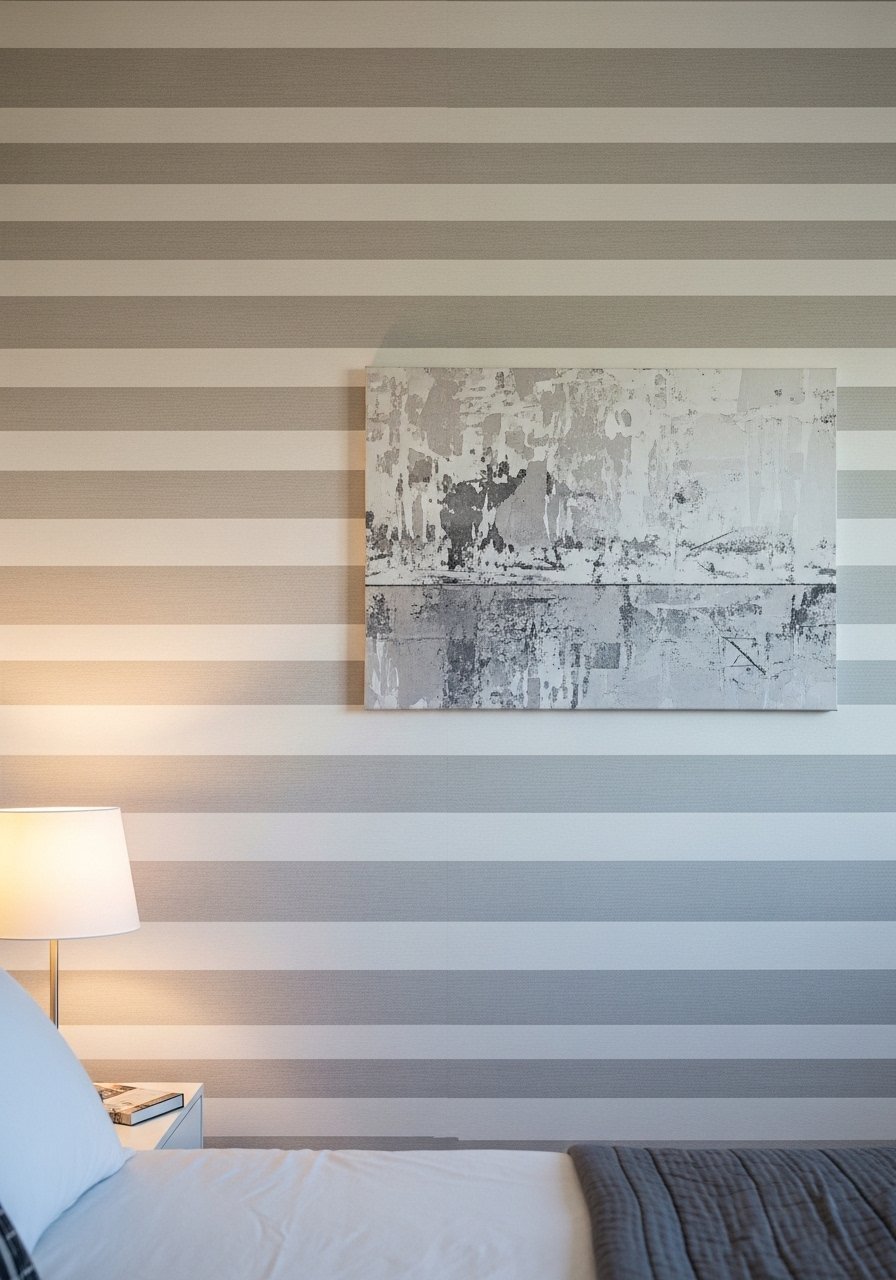 Textured Canvas Layered Over a Neutral Wallpaper Accent