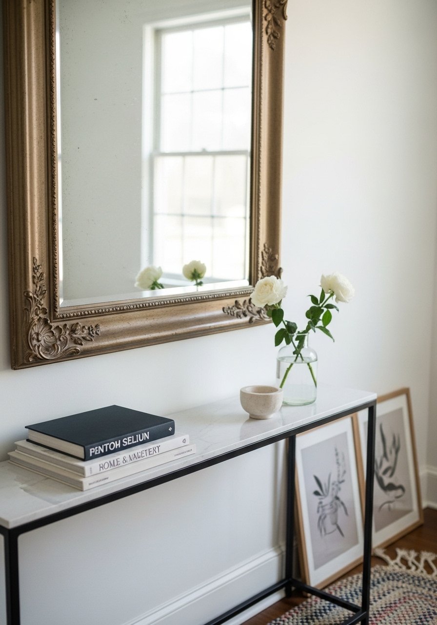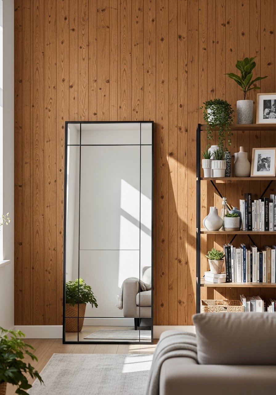 Choose high-quality peel-and-stick and test a corner first. A large mirror will double light and read like a built-in focal point.