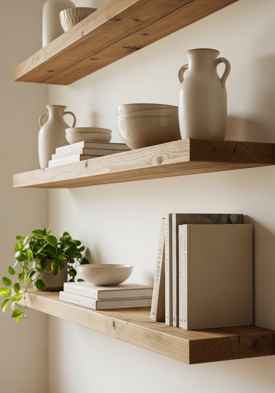 8. Reclaimed Wood Shelves to Show a Collected-Over-Time Aesthetic