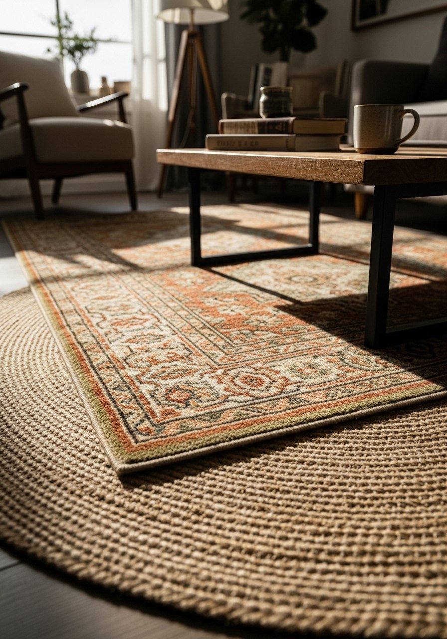 I layered a jute rug under a smaller patterned wool rug and it instantly read intentional. The jute grounds; the wool adds pattern and softness.