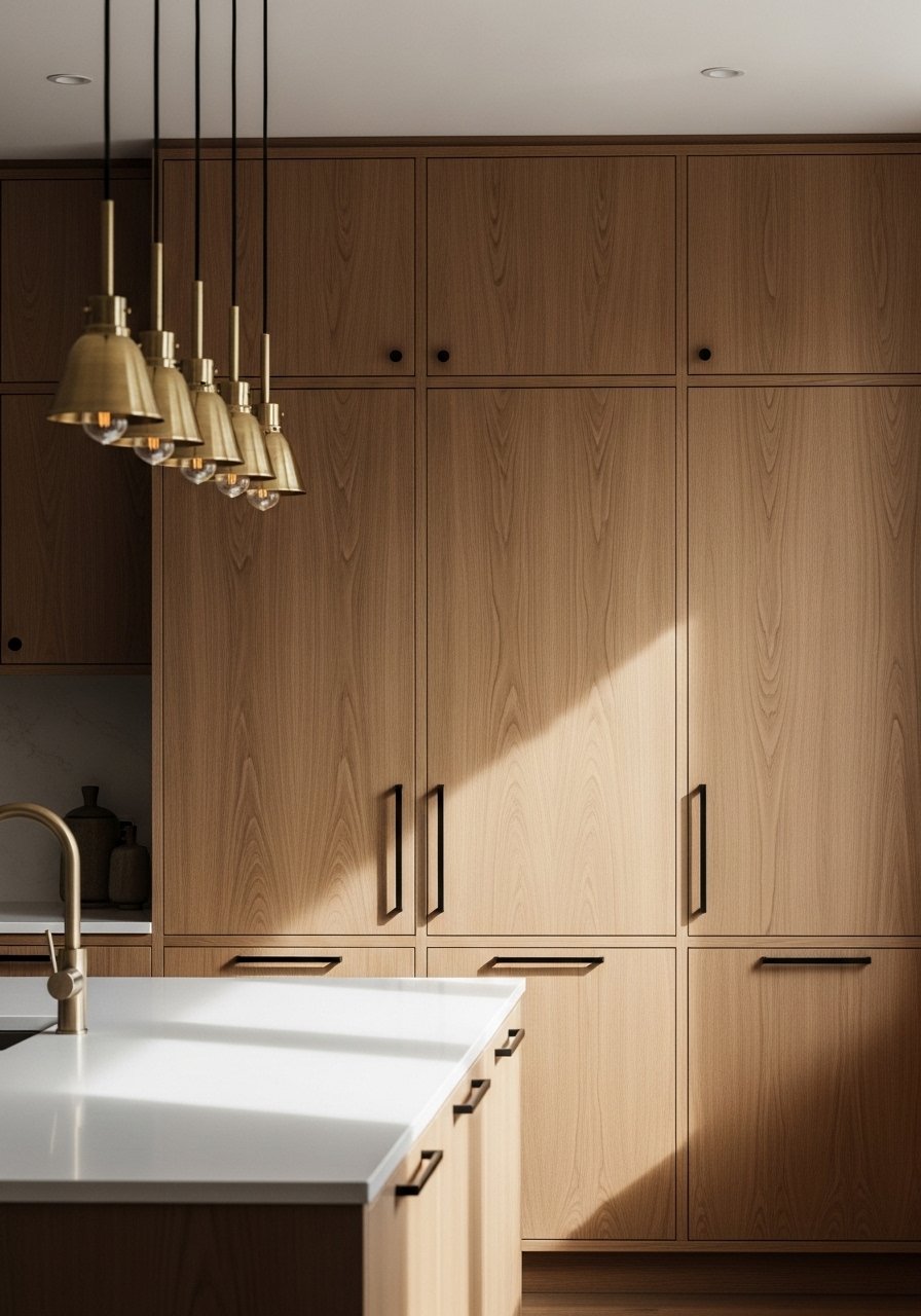 I used brass pendants over a wooden island and matte black pulls on cabinets. It felt deliberate and modern-rustic. Mixed metals add depth.