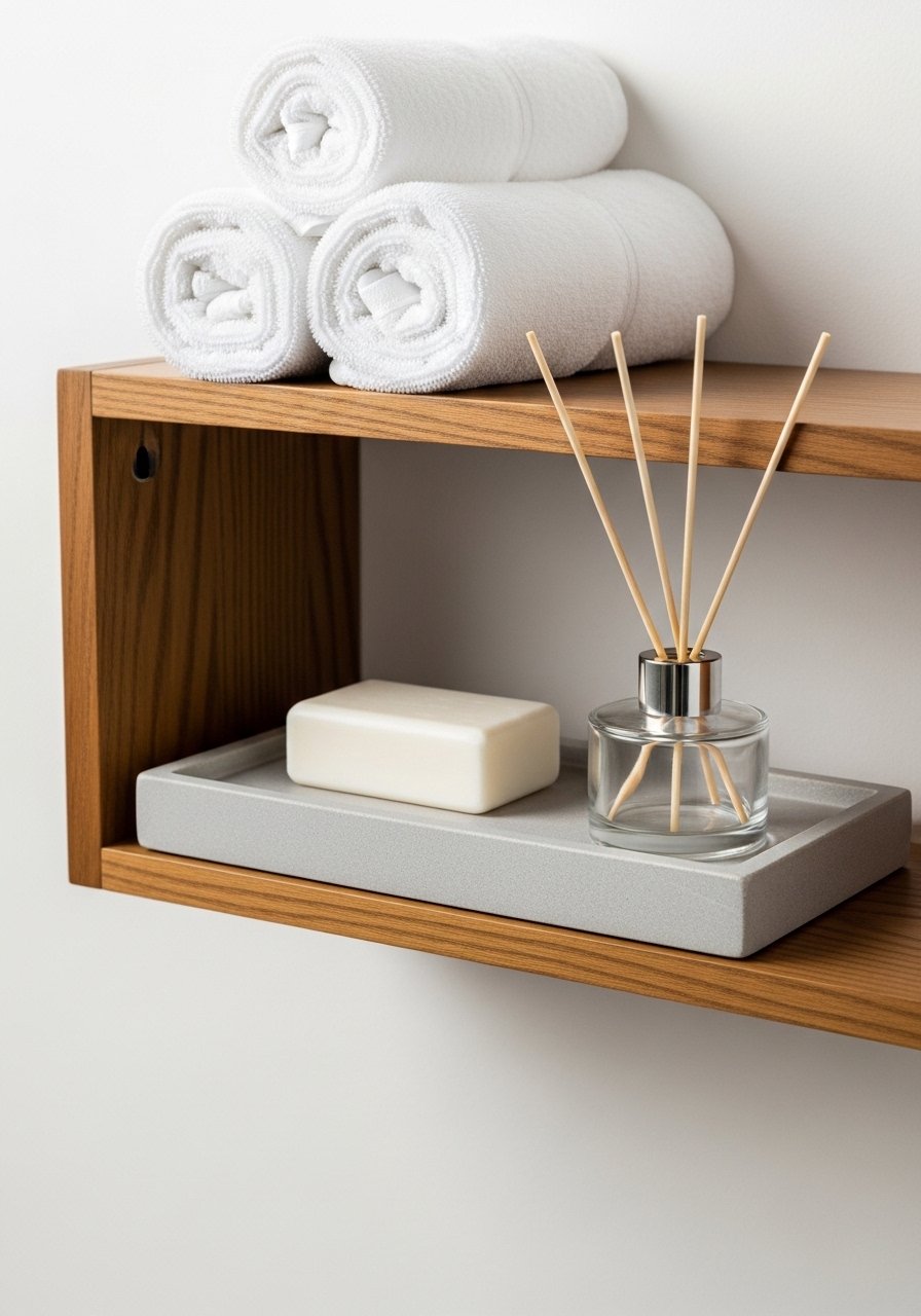 Bathroom Spa Shelf With Towels and Scented Elements