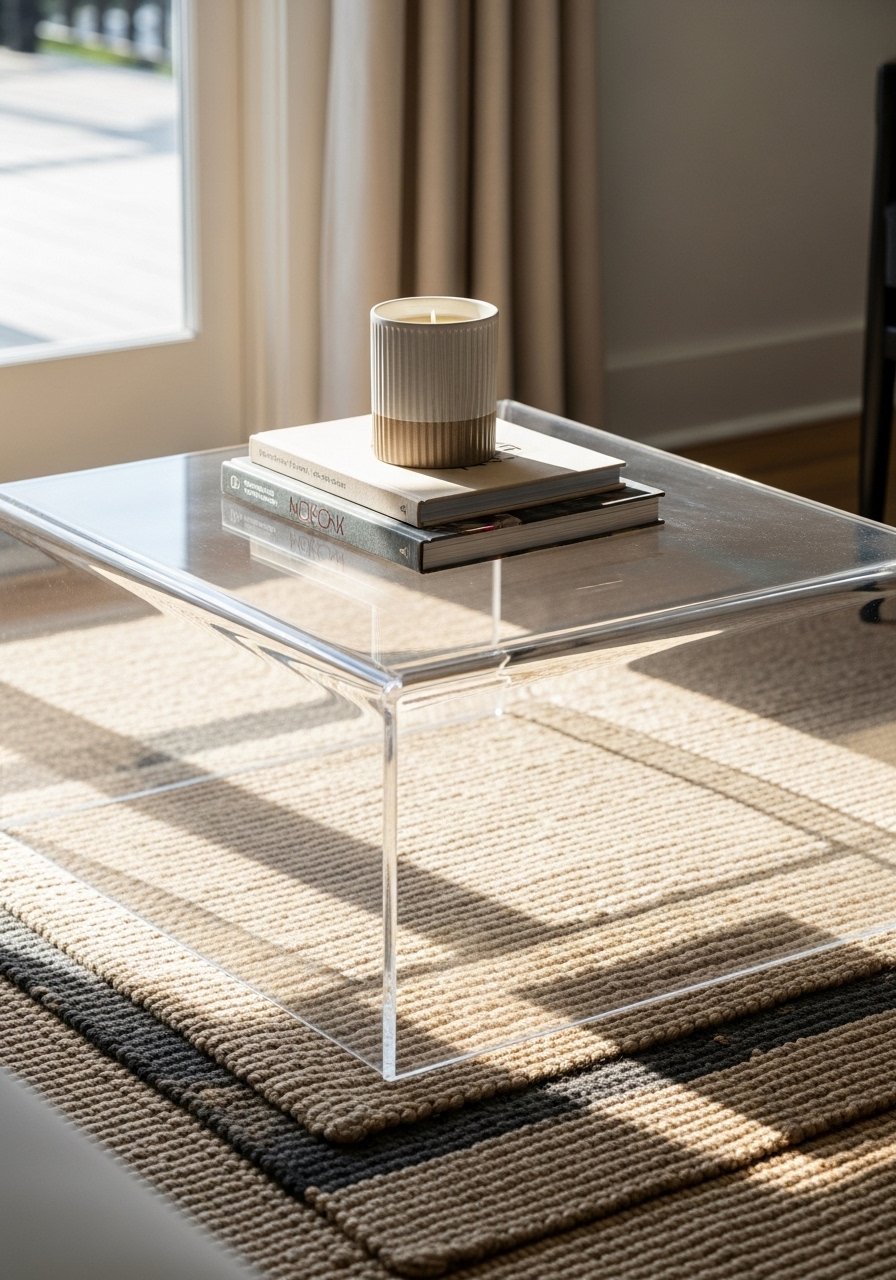 Glass Or Acrylic Coffee Table To Reduce Visual Weight