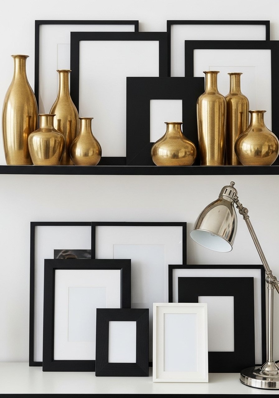 Mixing metals keeps a small room layered and current. I paired warm brass with matte black accents and a nickel lamp for balance. The trick is a dominant metal (I chose brass) and two accents to add depth. Avoid random clashing finishes; limit it to three metal tones max. Start with hardware or frames and add small accessories. This approach feels intentional and brings subtle contrast to a neutral palette.