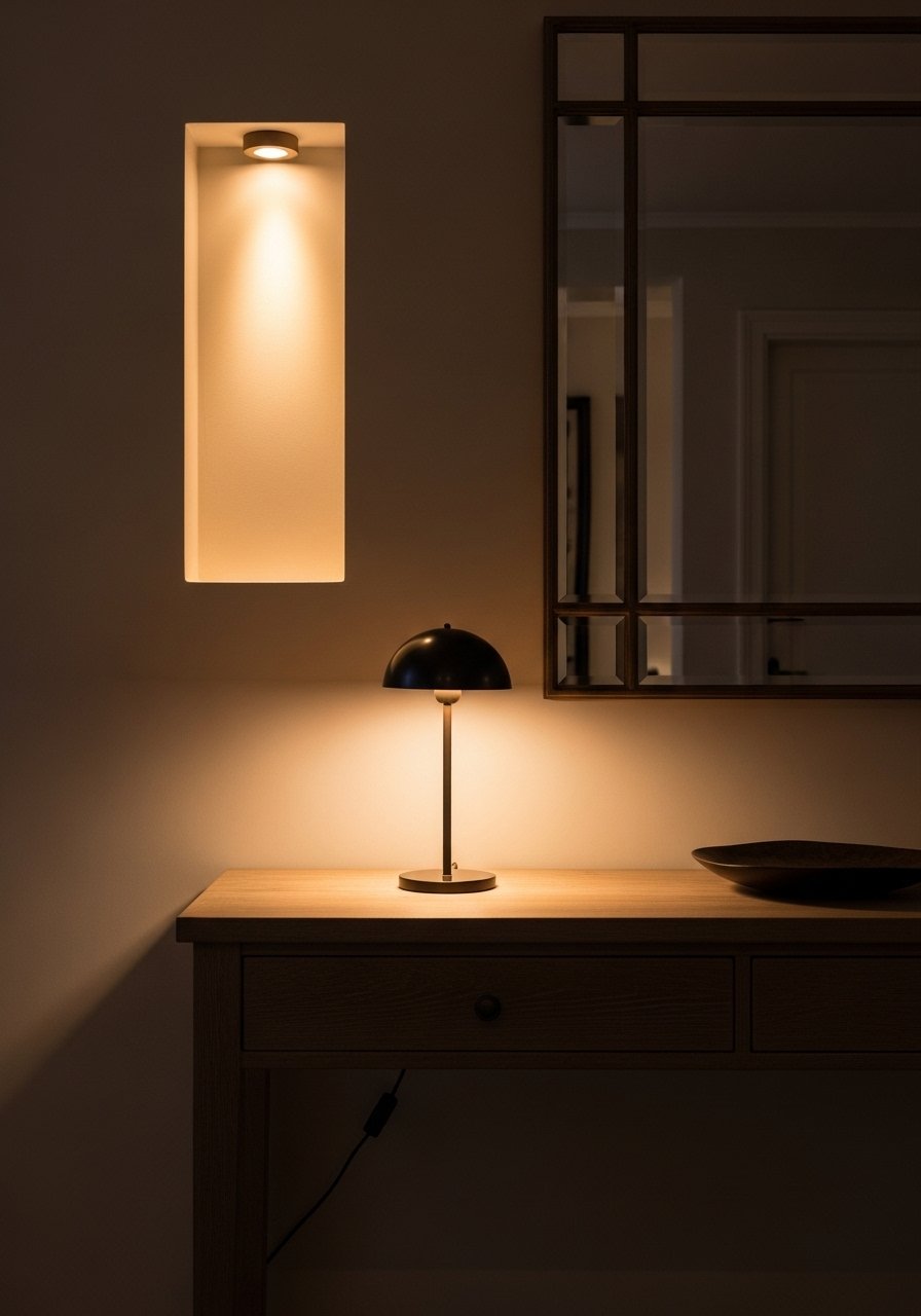 Recessed Wall Lighting And Table Lamp Pairing