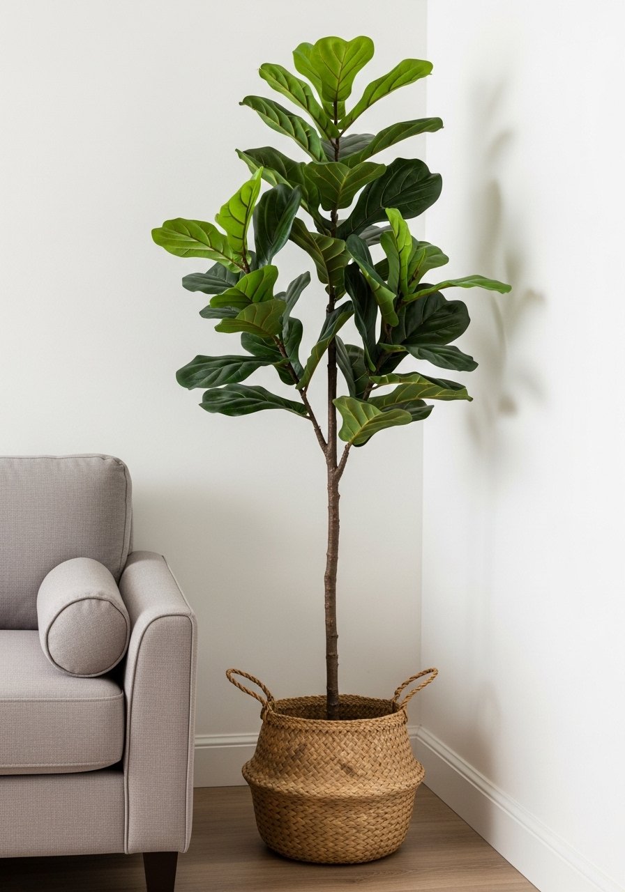 A tall artificial plant gives instant height without upkeep. I placed a 6-foot fiddle leaf fig in a corner and it visually lifts the ceiling. Pick a realistic one with a woven basket base for texture. Avoid placing it in the center of a walkway — corners are best. For real plants, choose low-light varieties if light is limited; otherwise faux is a smart no-fuss option.