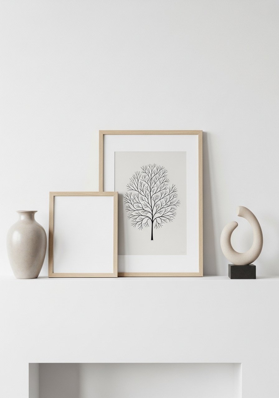 Styling a mantel with three objects creates a curated, intentional focal point. I use a taller object, a medium frame, and a small sculpture arranged off-center. Odd numbers and negative space keep it from feeling busy. Avoid lining the mantel with a dozen small items; clutter shrinks a room. This clean approach highlights a focal point and maintains breathing room in a compact living area.