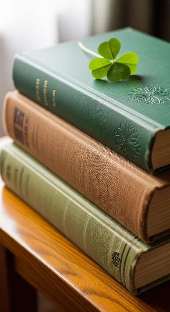 Scatter small shamrock accents nearby, or weave twine around bottle necks for rustic texture. Add a candle or framed print to complete the vignette.