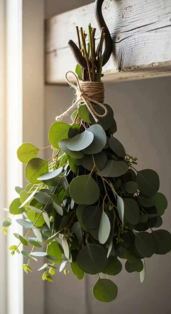 Eucalyptus brings airy freshness to cottage décor. When hung upside down, it adds a sweet herbal scent and a rustic Irish-inspired farmhouse look.