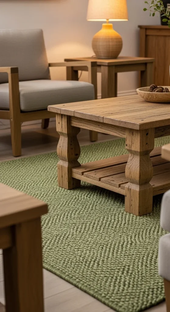 A country-style rug adds grounding warmth and just enough color to tie your St Patrick’s Day theme together. The woven texture enhances cottage charm.