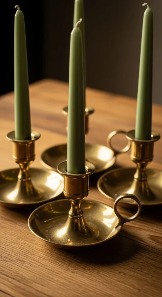 Antique brass brings old-world Irish charm. Paired with green candles, they become an elegant nod to the holiday.