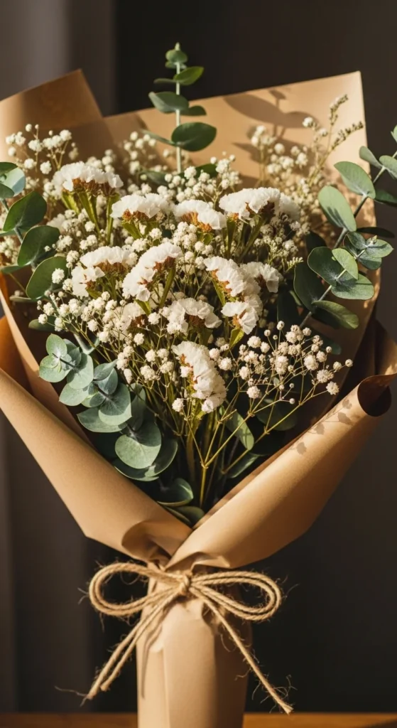 Dried bouquets embody cottage charm—simple, rustic, and timeless. Adding green tones makes the arrangement feel fresh for St Patrick’s Day.
