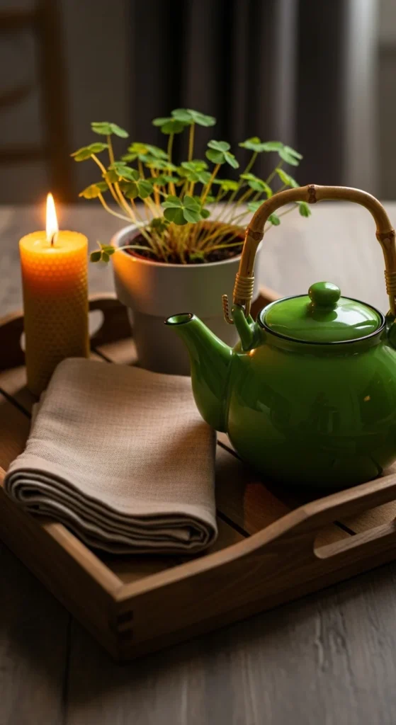 A tea tray brings cottage comfort and creates a perfect cozy moment for St Patrick’s Day. It’s charming, simple, and wonderfully homey.