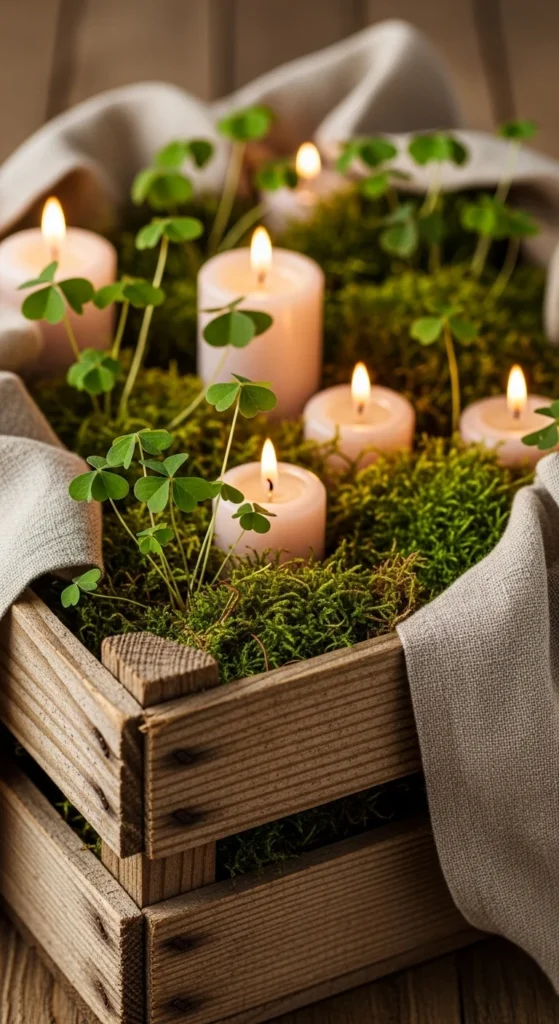 Cottage décor loves soft candlelight, and adding green tones brings a subtle St Patrick’s Day twist.