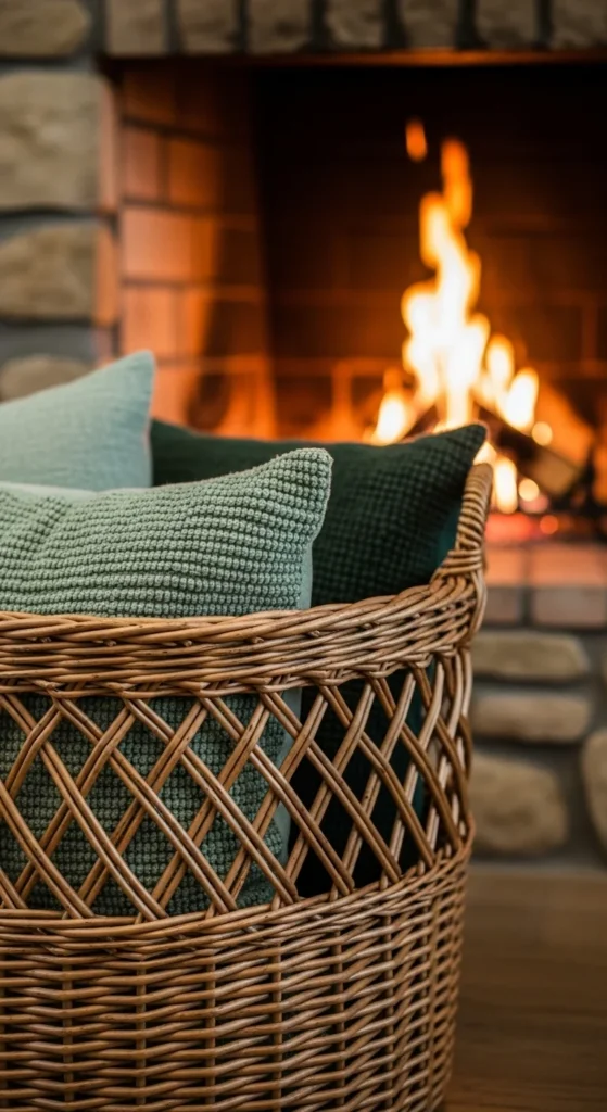 6. Basket of Cozy Green Pillows