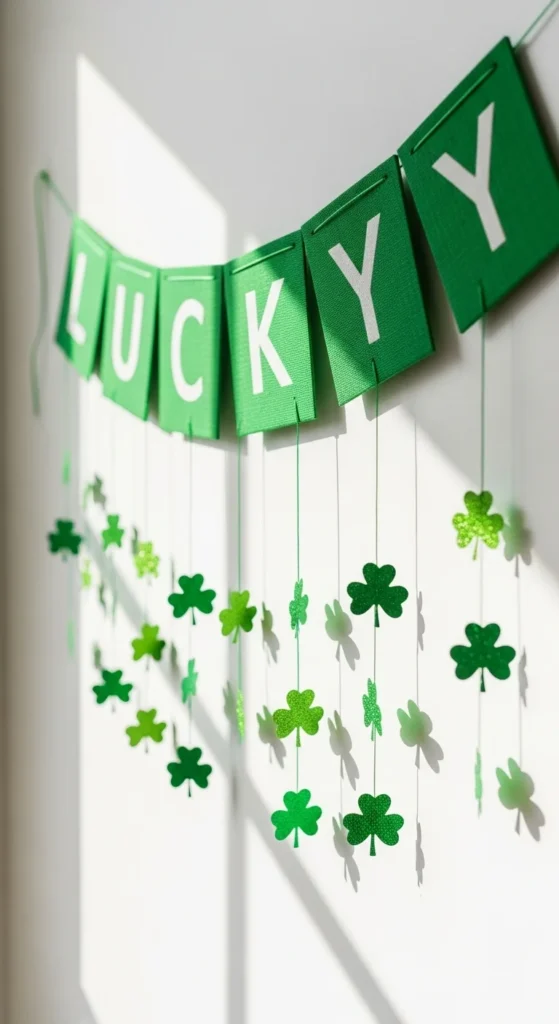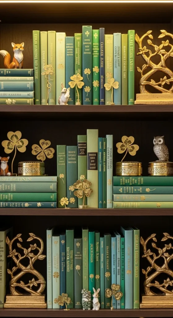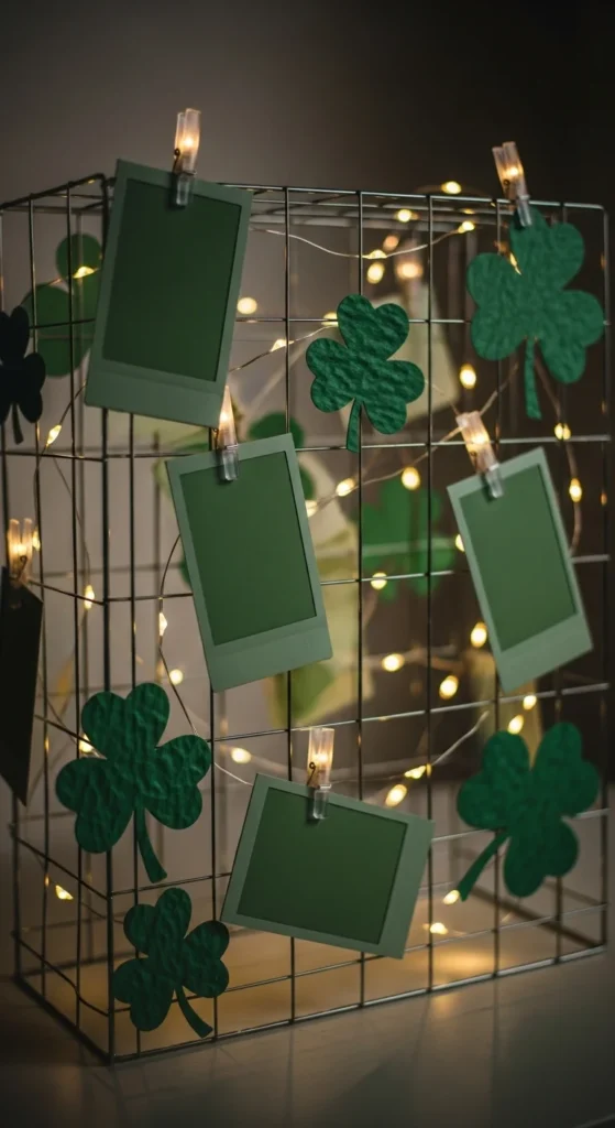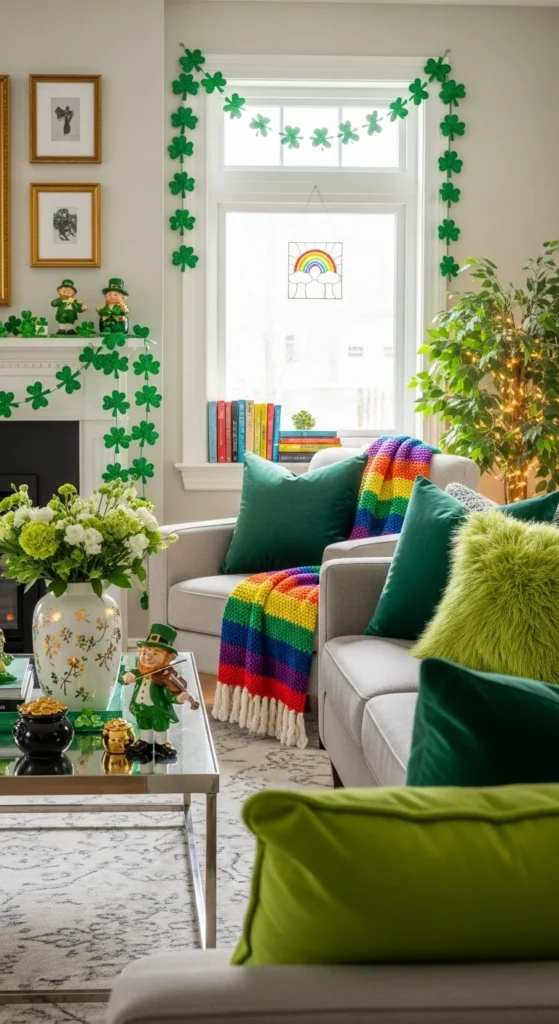 This cute decor idea transforms any couch or bed into a cheerful St. Patrick’s Day scene, using shamrock-shaped pillows and soft greens to create a playful, welcoming vibe. The textures make the space feel instantly cozy, while the shapes add a whimsical holiday touch that’s simple yet eye-catching. It’s ideal for living rooms, bedrooms, or reading nooks, offering a soft pop of festivity without overwhelming the space.