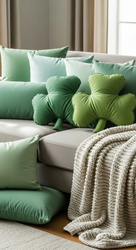 - Add the shamrock pillows in the center for focus.