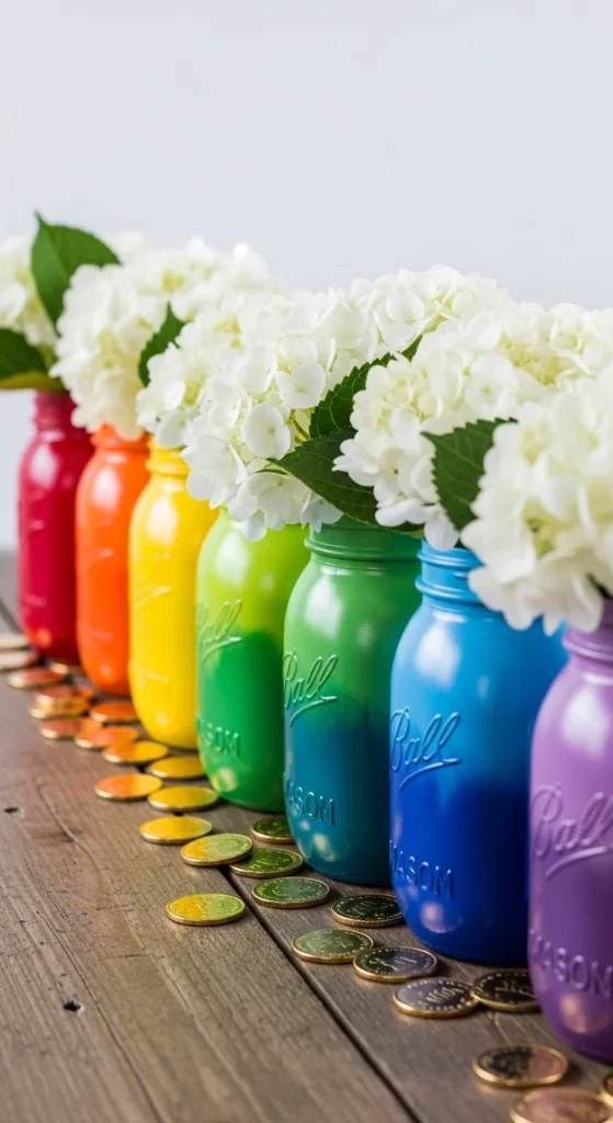 2. Rainbow Mason Jar Centerpieces