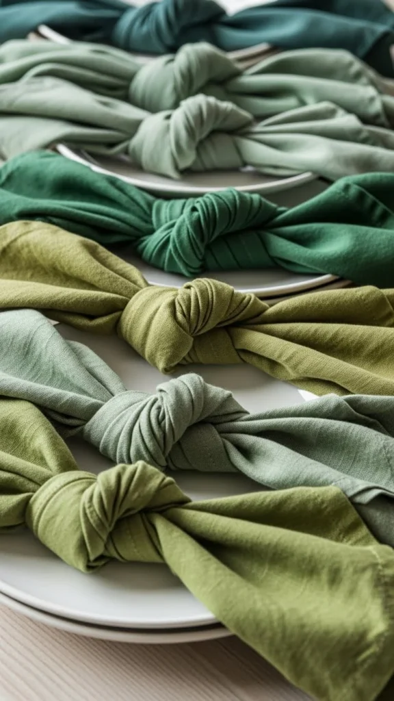 Pair with neutral plates and simple centerpieces. Add candles for warmth. Keep napkins light-colored to balance the green.