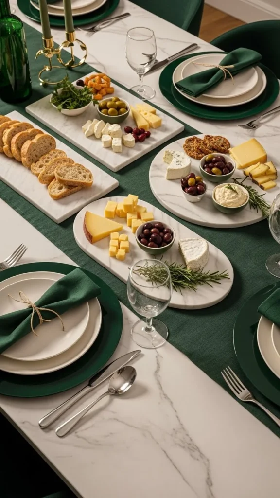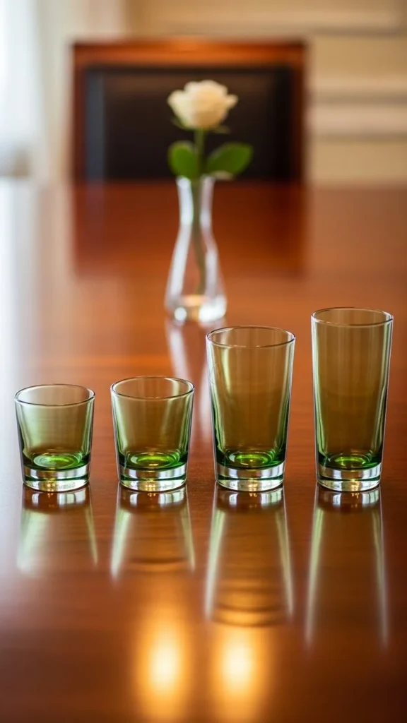 Green glassware feels festive but subtle, especially when paired with neutral dishes.