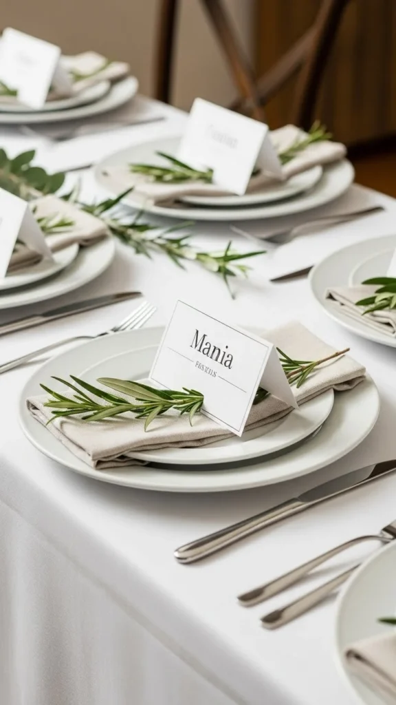 13. Neutral Place Cards with Greenery
