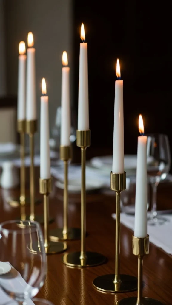 - Brass candle holders (3–5)