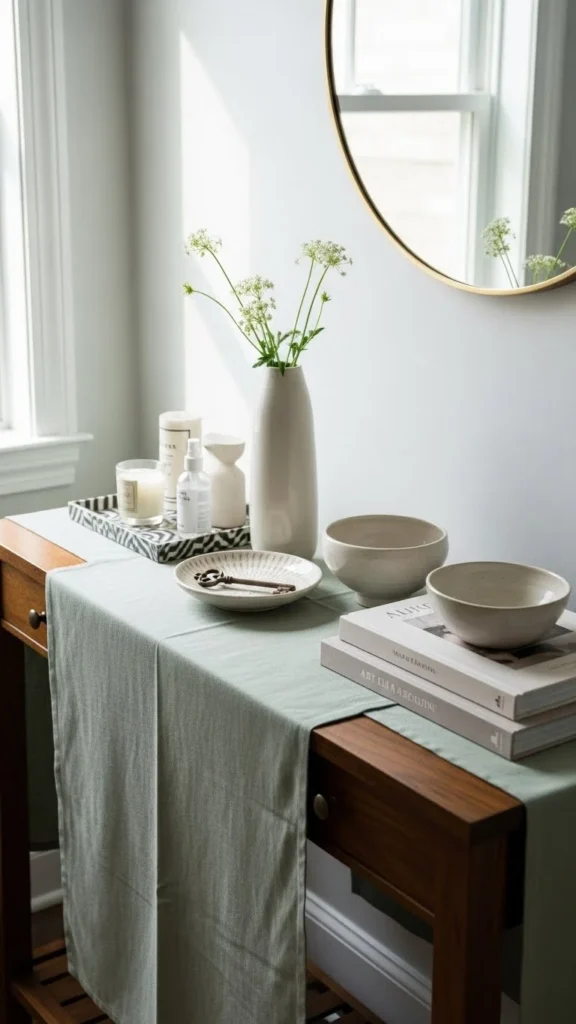 A runner instantly changes the mood. Sage green feels calm, not flashy.