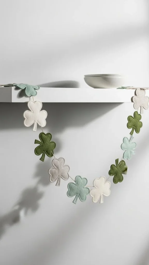 Minimalist shamrock artwork gives a calm, subtle nod to St. Patrick’s Day without overpowering your space. It blends beautifully with contemporary interiors and keeps the look clean, airy, and stylish. This design is perfect for those who love festive touches that feel grown-up and modern.