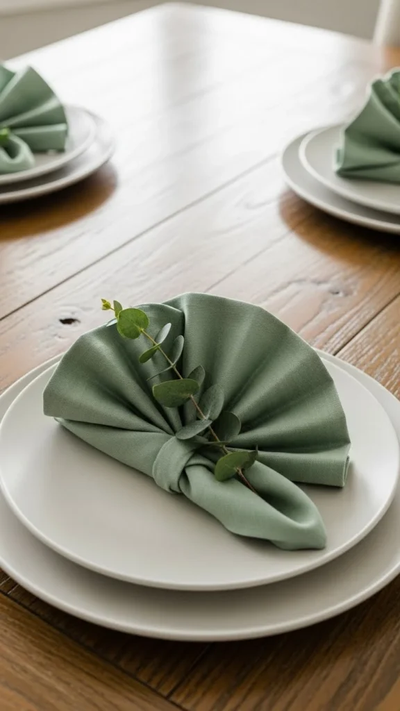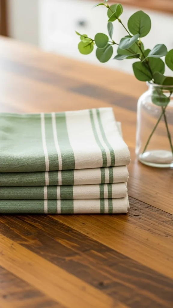 Linen napkins instantly elevate the dining experience while adding calm green tones.