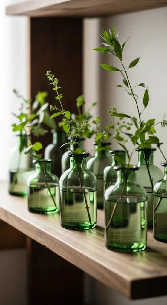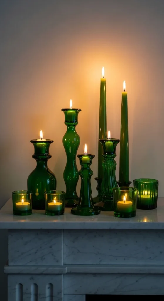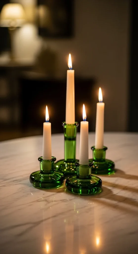 - 3–5 green glass candle holders