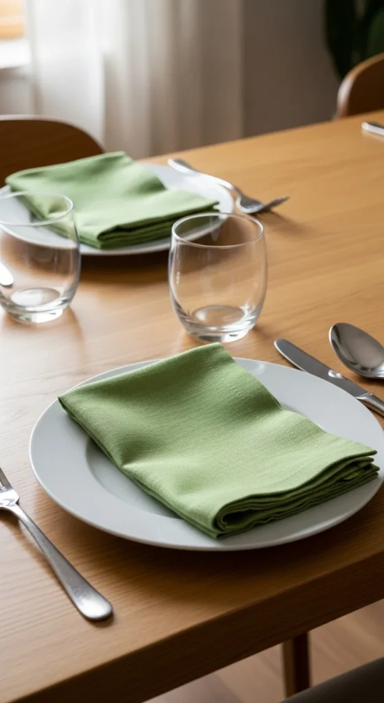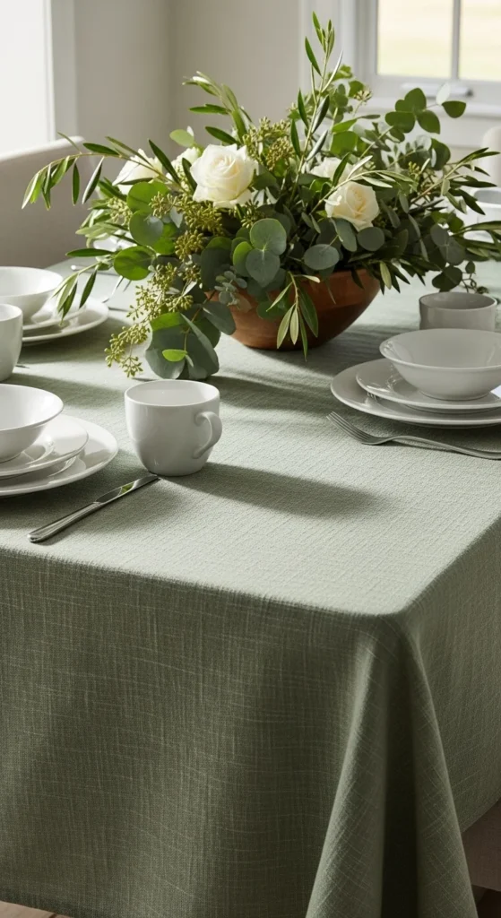 21. Soft Green Tablecloth with Texture