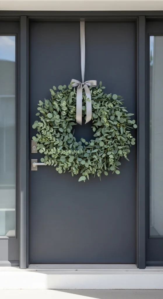 6. Faux Eucalyptus Wreath with Subtle Green Ribbon