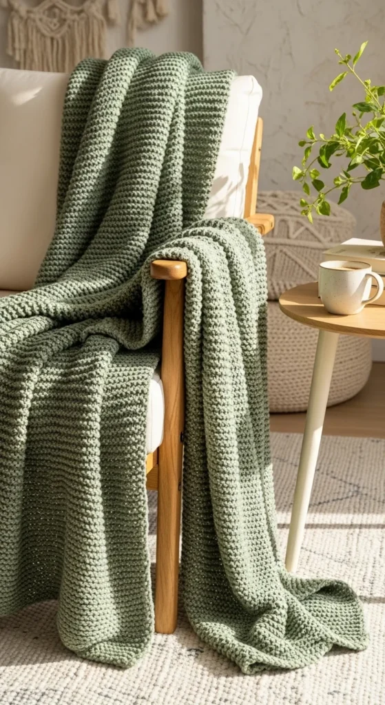 - Layer a throw blanket with soft folds.