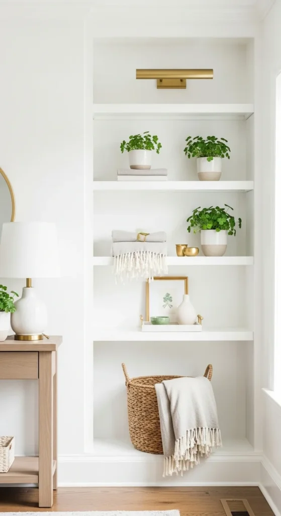 1. Minimalist Shamrock Shelf Styling