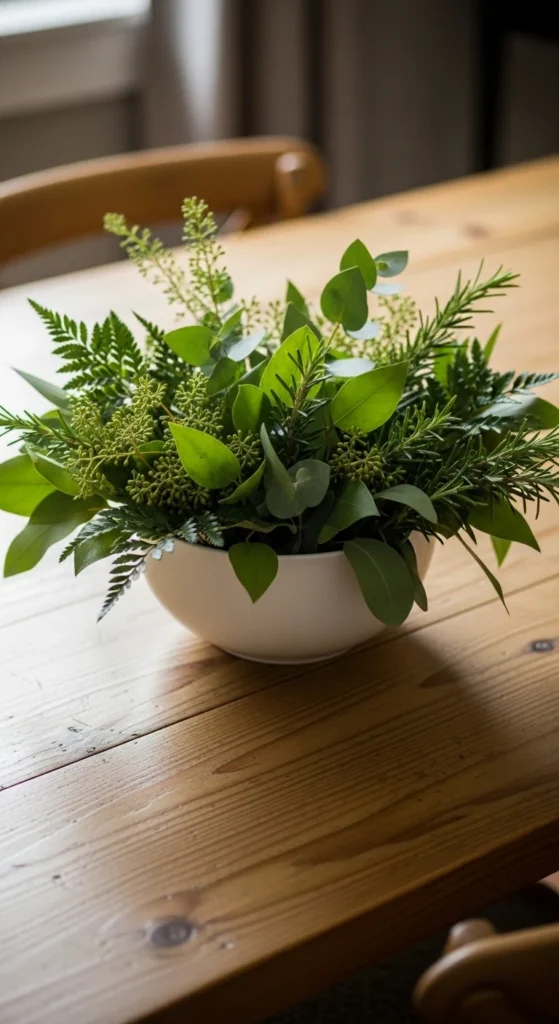 A centerpiece doesn’t need to be elaborate. A bowl of simple greenery is budget-friendly, elegant, and surprisingly eye-catching.